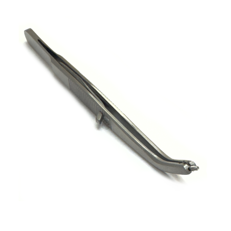 Этот пинцет специально разработан для удобной работы мастеров сборки очков. Оснащен двухсторонней расточкой для надежного захвата винтов и предотвращения их выпадения во время работы. Удобный замок обеспечивает жесткую фиксацию винта, что значительно облегчает сборку и ремонт очков. Загнутый конец пинцета идеально подходит для работы в труднодоступных местах и соединениях, обеспечивая точность и комфорт при сборке оправ и линз. Высококачественный материал и эргономичный дизайн делают этот инструмент незаменимым для профессиональных оптиков и мастеров по ремонту очков.
